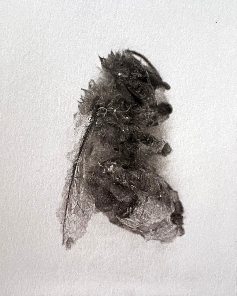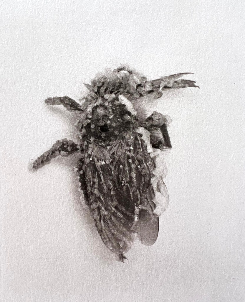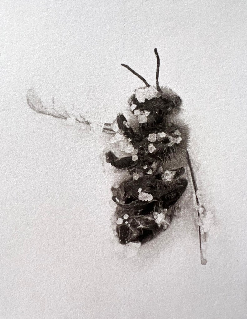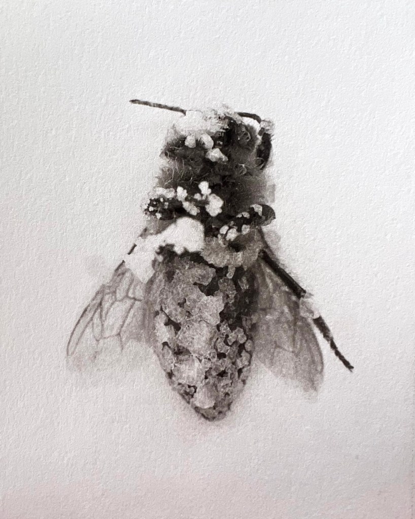 And The Bees Went Still alludes to the ecological catastrophe Utah now faces and becomes more pertinent every day. Palladium prints of bees covered in salt crystals depict a metaphorical future for the beehive state. The insect bodies stand in for both the local residents and the local flora and fauna. While the diversion of water, environmental warming, and mismanagement of the Great Salt Lake continues the ominous threat of toxic airs and raging storms of dust and salt takes steps towards becoming a reality. The delicate images stylistically reference Irving Penn’s cigarette series, who brought attention to the overlooked discard of everyday people, similarly And The Bees Went Still turns to the overlooked, the possible consequences of an environmental tragedy.