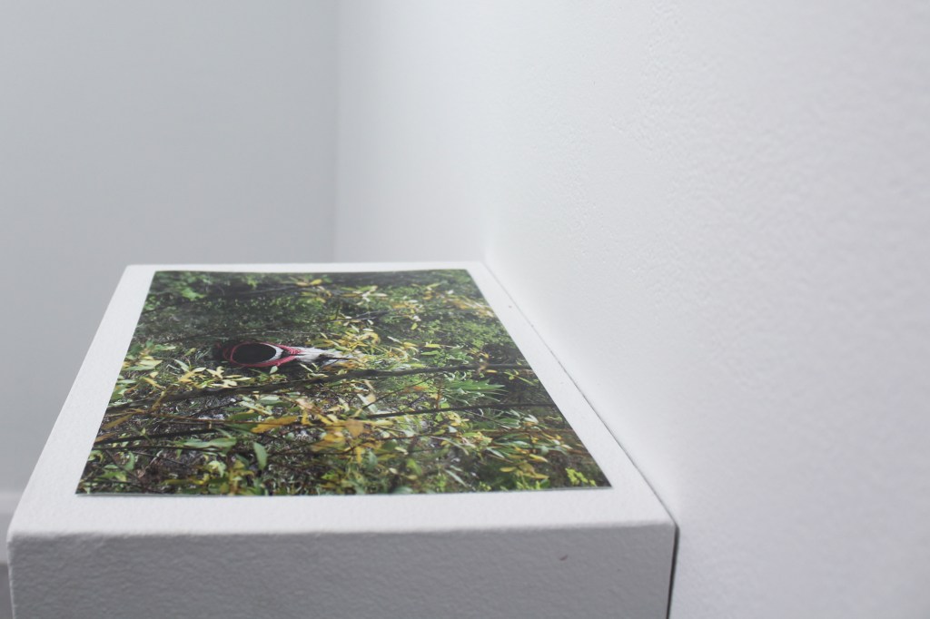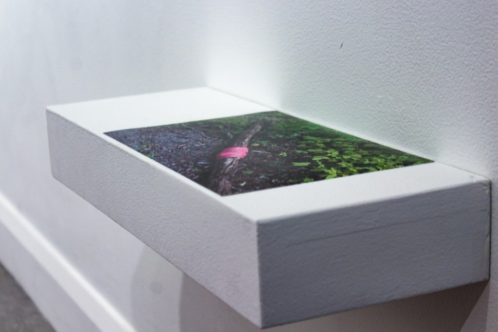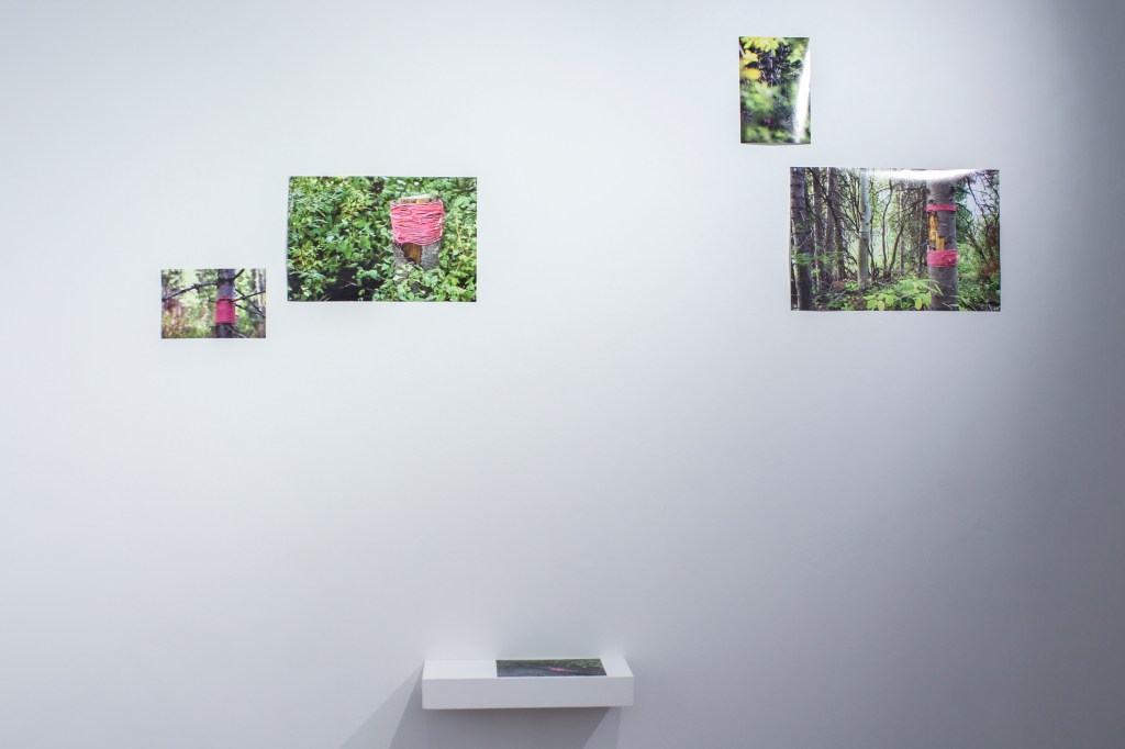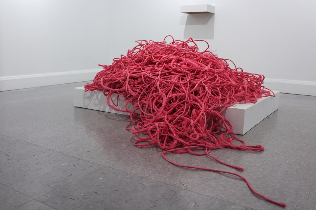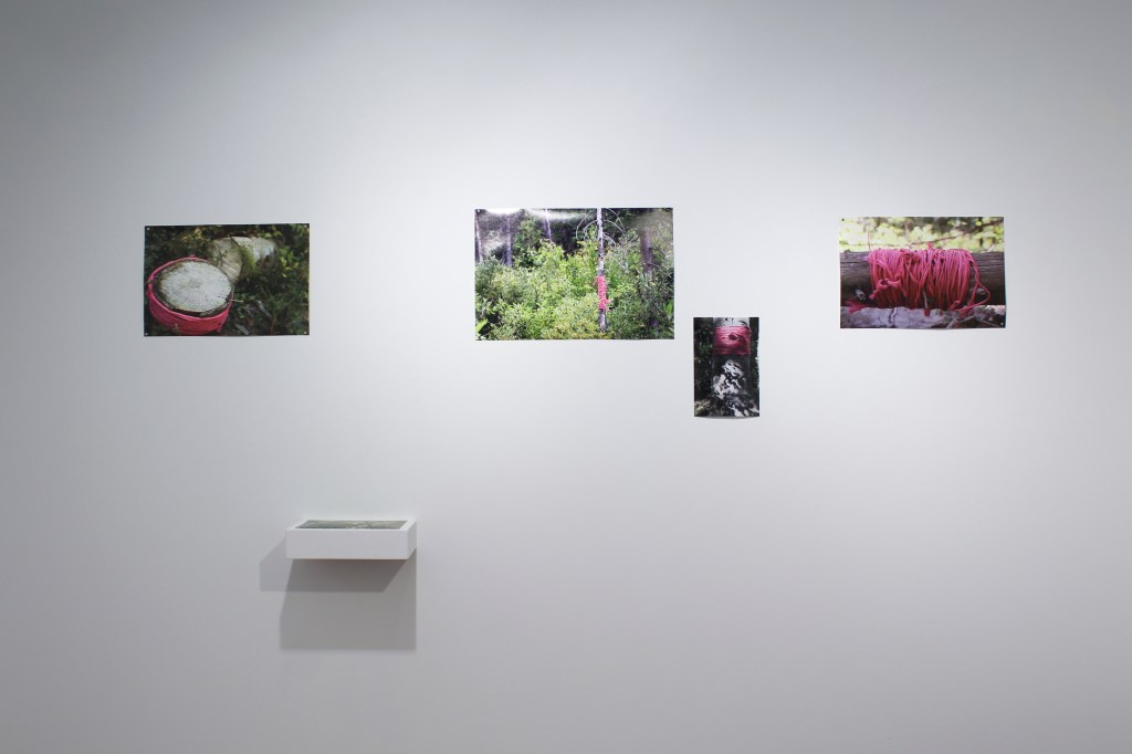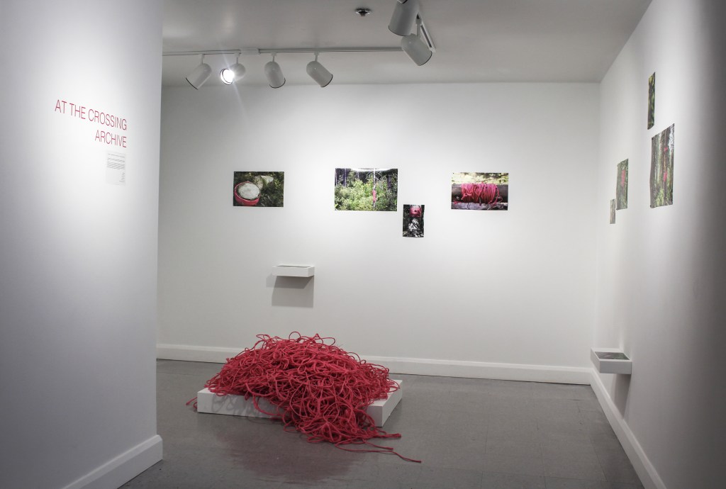 Following the site specific installation AT THE CROSSING was brought into the Gallery space, the in space collection, AT THE CROSSING ARCHIVE, was presented through photographic documentation and a small installation of the bailing twine used