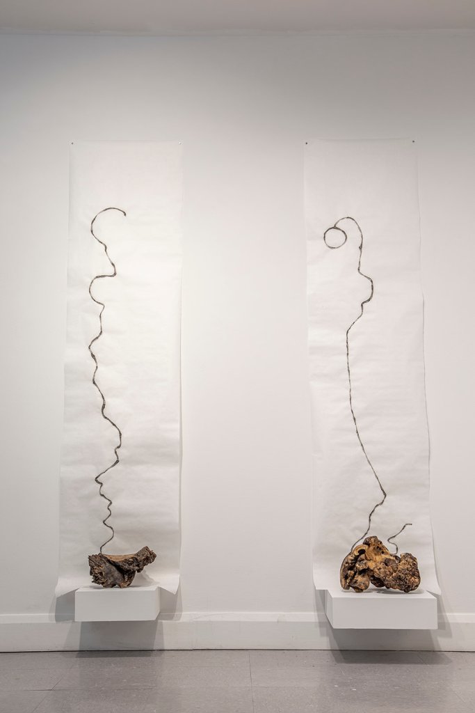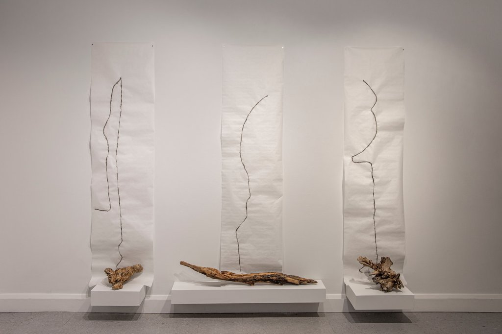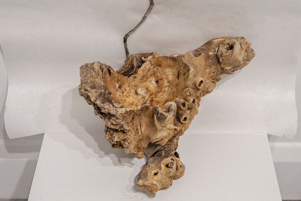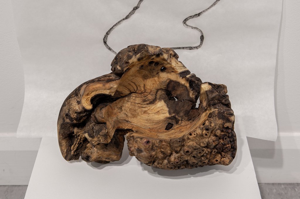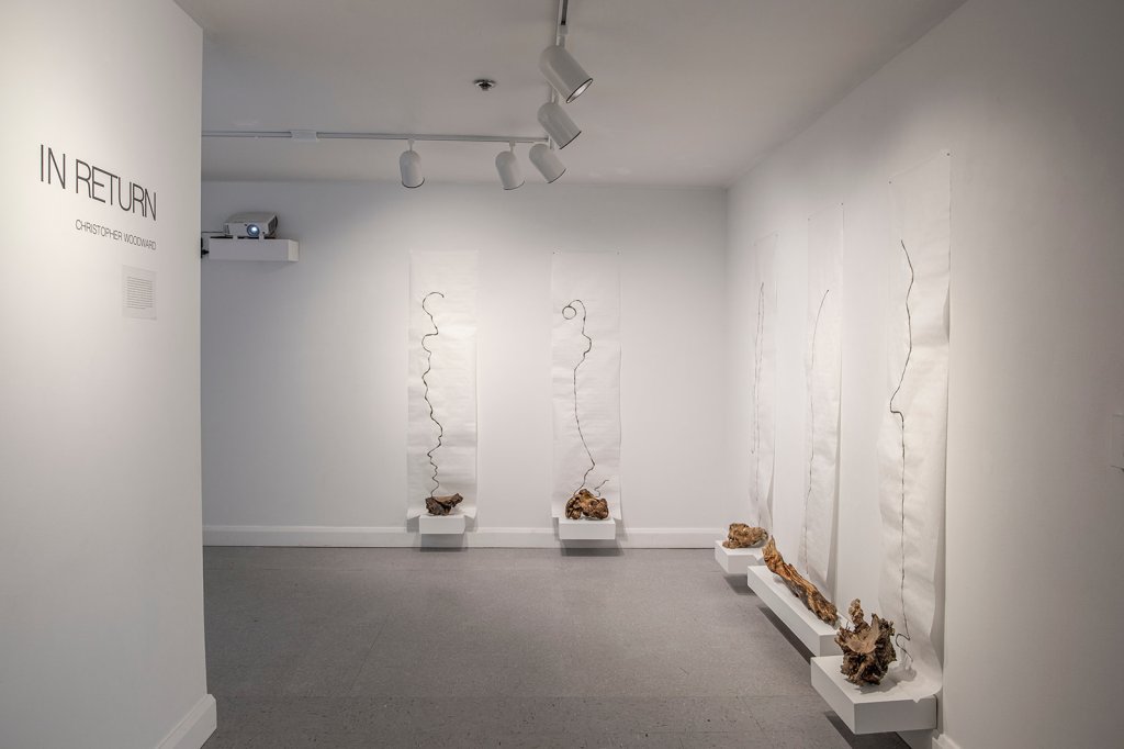 IN RETURN is a series of five ceremonies conversing with the earth. Beginning on the fall equinox, a day of equals, when day and night are parallel in time, each ceremony is a ritual of giving, focusing on the relationships of reciprocity we have with Earth. They are offerings of what is reaped from the land and a gift of what is taken, each is a return. Beginning with a walk, the mind is cleared and a closeness is formed with nature. The walk concludes at specific locations significant to the artist. Each offering, unique to its location, differs in sustenance, but contributes as a gift to natural beings; seed for the avian, water for the bush, soil for the earth, nectar for the insect, and fruit for the mammal. The offering vessels are crafted from the wood of uprooted sage, and discarded trees to hold each gift. At the conclusion of each ceremonial performance, a map of the walk is drawn onto a rice paper scroll, the ink created from the ash of an aspen tree. This is the first of four ceremonial cycles, each of which will correspond with the equinox calendar.